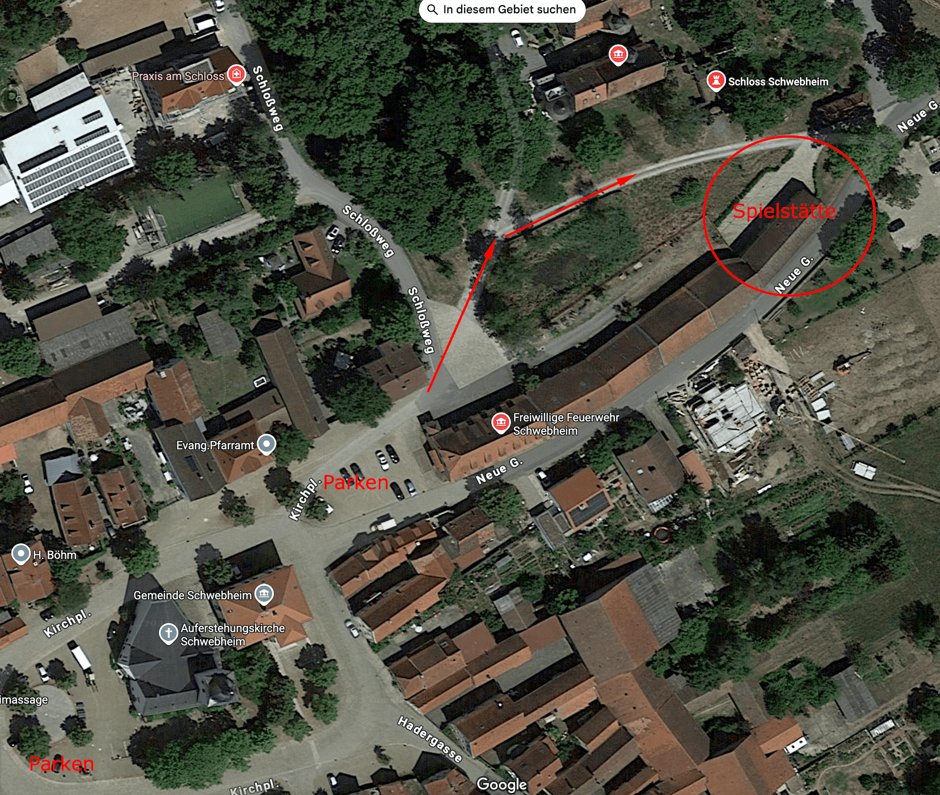 Für die Anfahrt entweder rund um das Schwebheimer Schloss parken. Beispielsweise entlang der Schloßstraße.