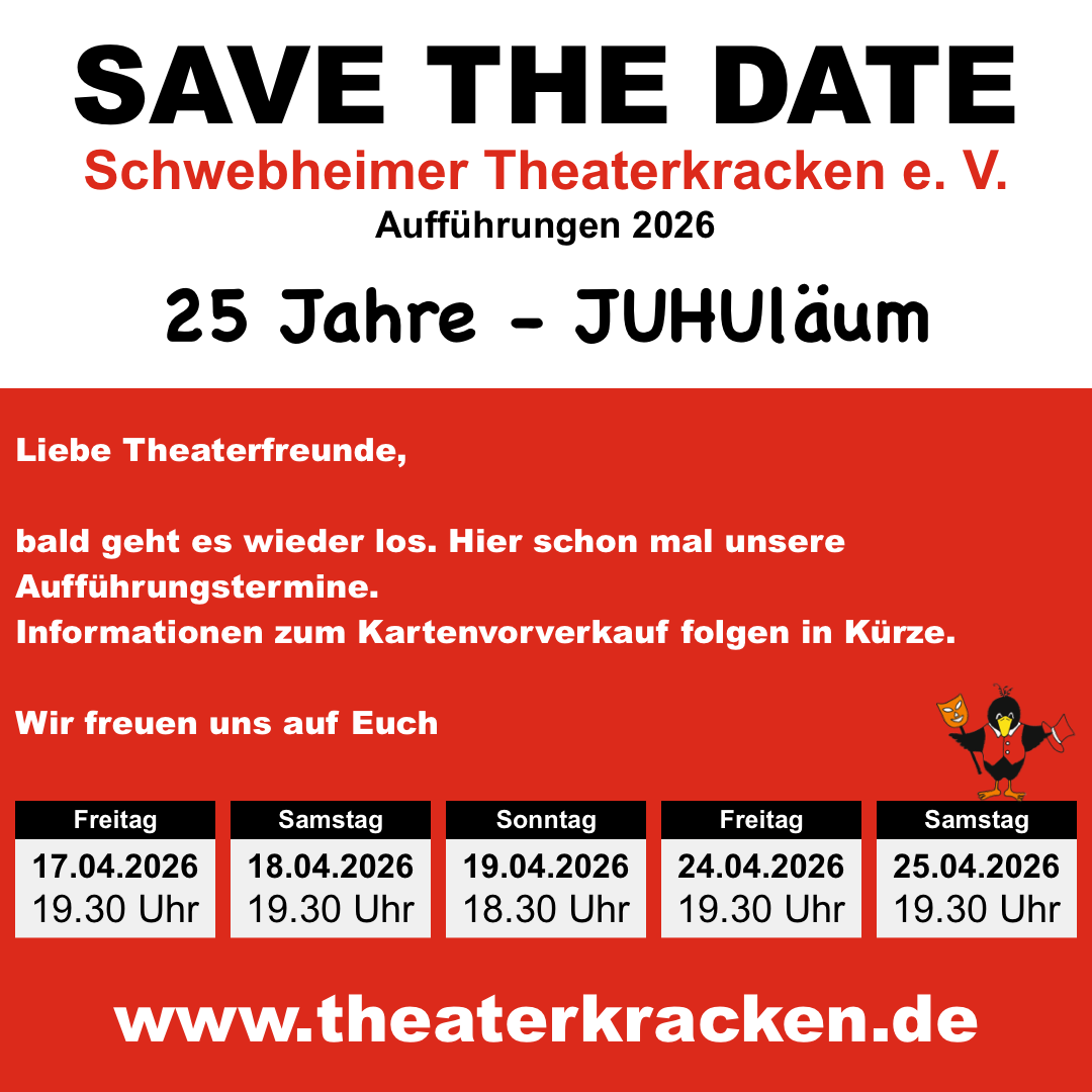 SAVE THE DATE – 25 Jahre Theaterkracken – JUHUbiLäum – Aufführungen 2026